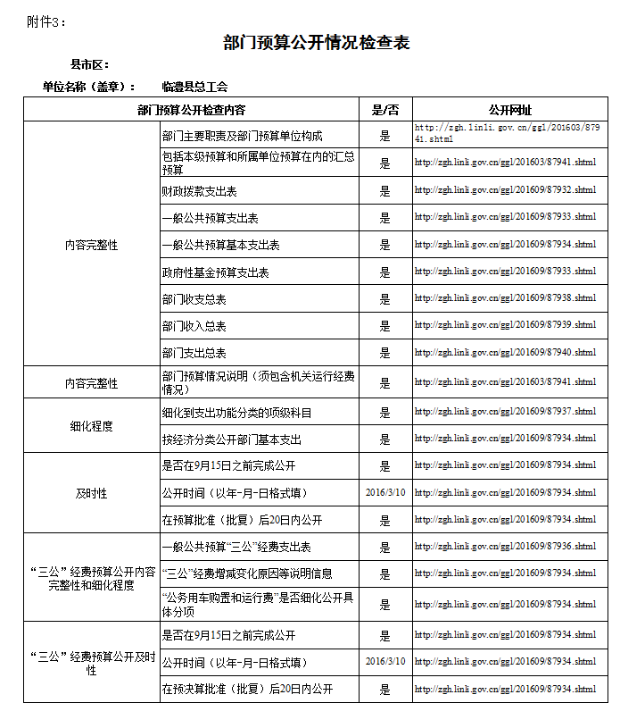 部门预算公开情况检查表