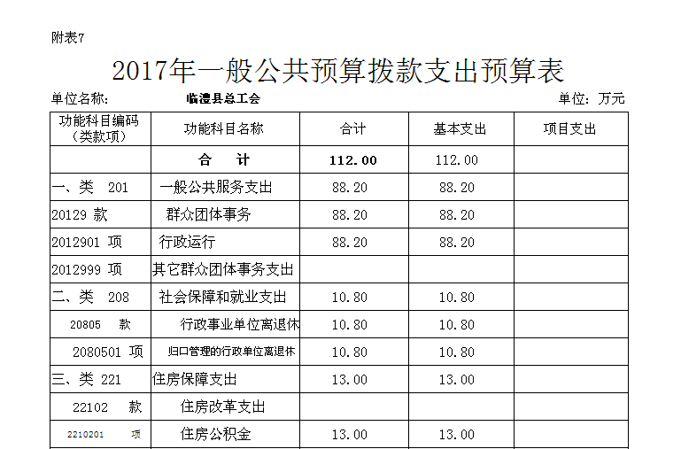 2017年一般公共预算拨款支出预算表